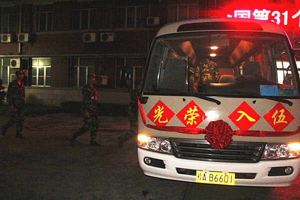新兵们统一乘车奔赴集结地—南宁东站