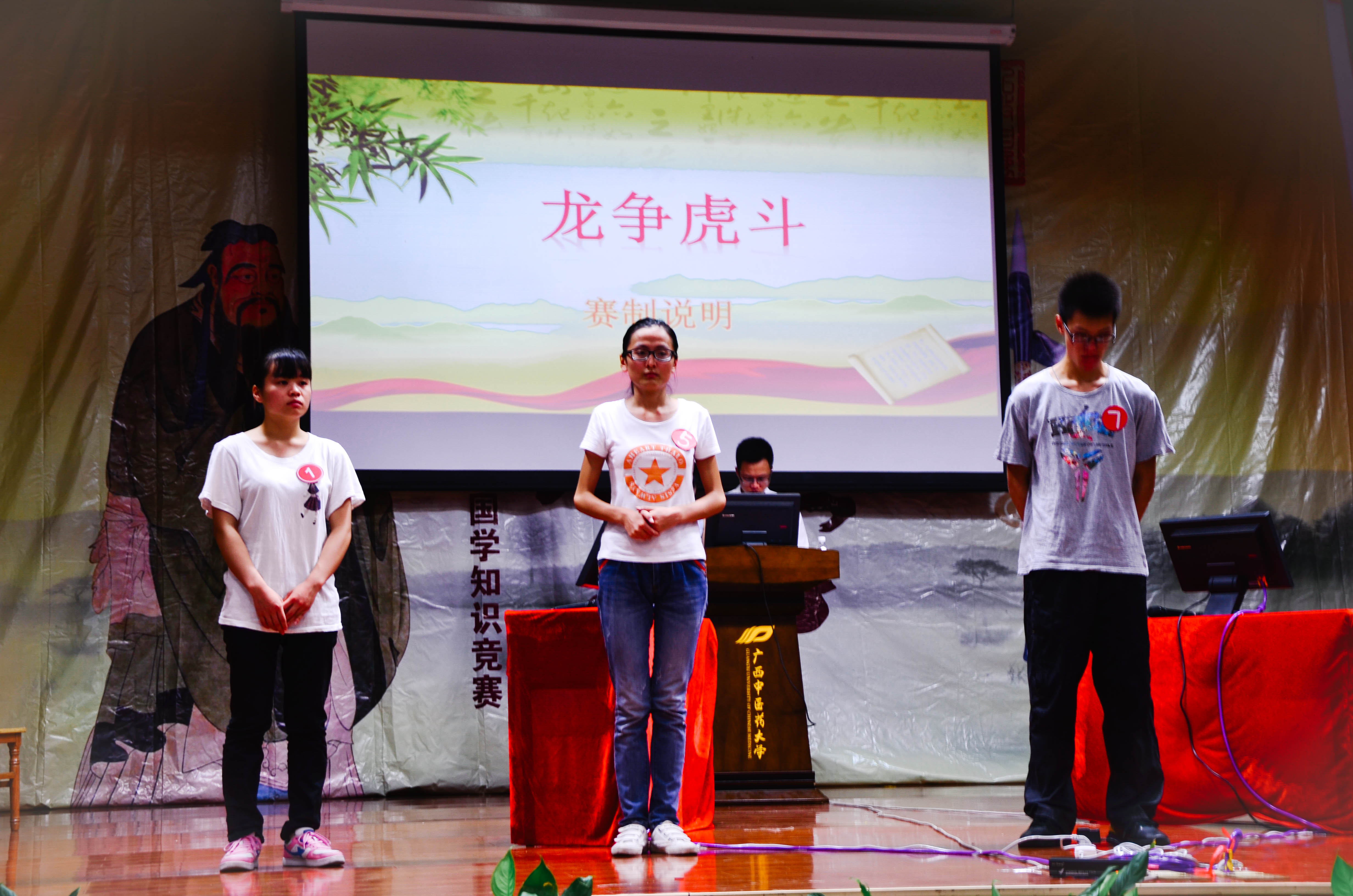 今夜月明星稀,今夜知识的海洋在涌动。2016年6月14日19:00以“品国学,传杏林”为主题的国学知识竞赛在鸭脖仙葫校区小礼堂隆重举行。本次大赛的预选赛报名异常火爆,经过预选赛的激烈角逐,仅有12名选手凭借自己深厚的国学底蕴在800余人中脱颖而出。
