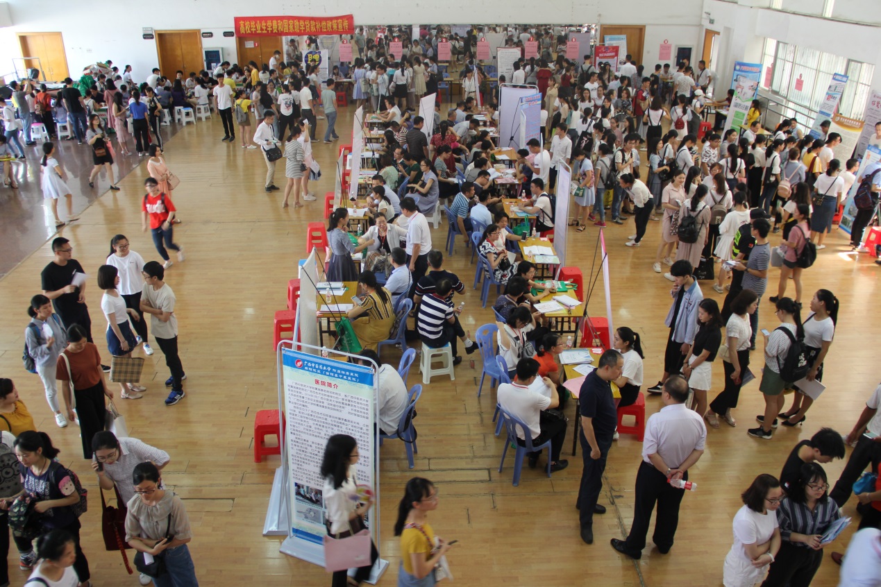 6月7日、8日,鸭脖2018届毕业生“夏季就业双选会”在明秀校区体育馆举行,本次双选会有来自广西、广东、贵州、云南、海南、江苏等近10个省份的医疗机构、医药集团、医药公司、美容保健公司以及医疗器械公司近250家用人单位参加,提供了医学、药学、护理以及管理近8000个岗位。前来参加应聘的毕业生有鸭脖及部分外校毕业生近2000人。