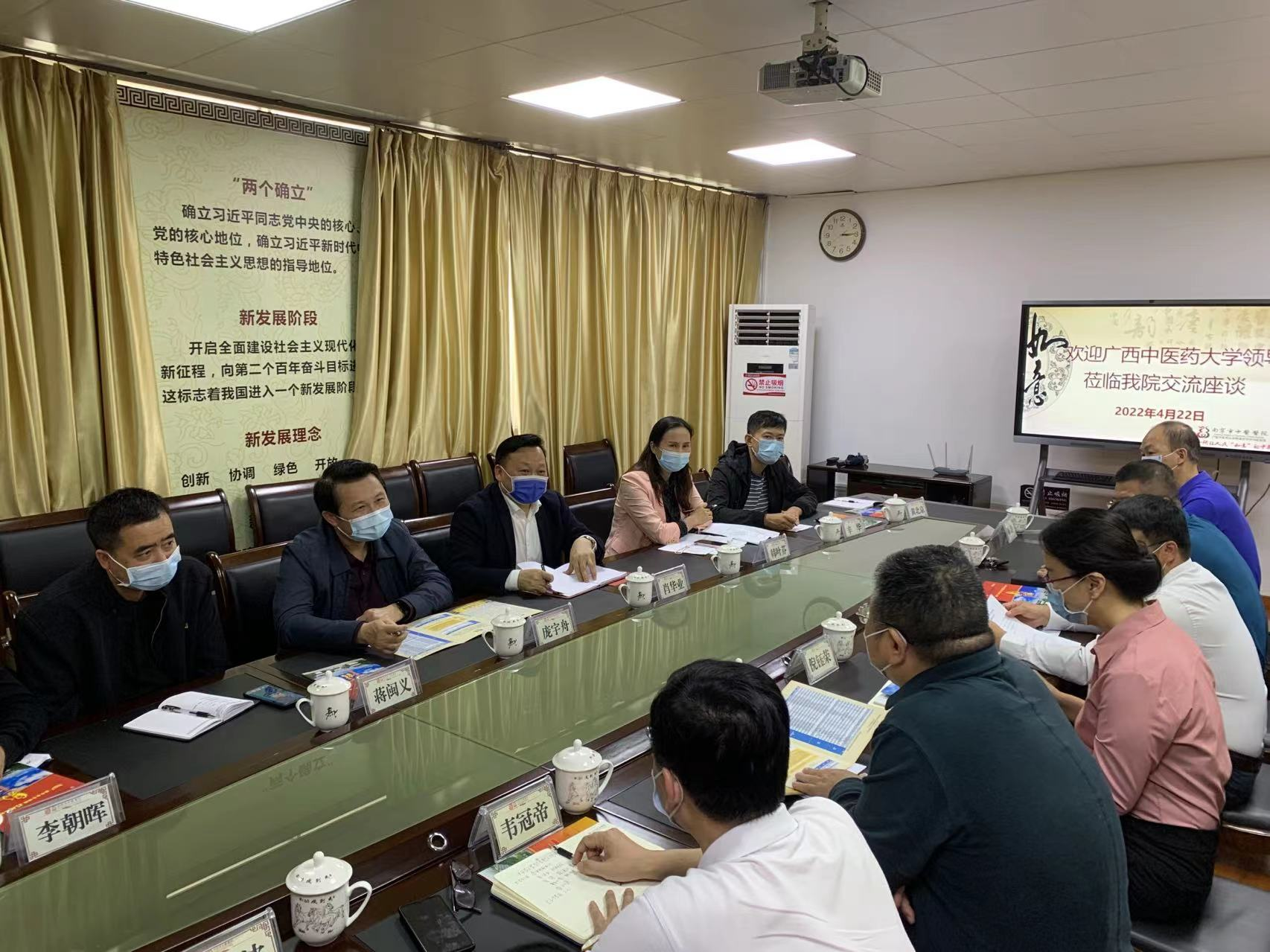 4月22日,学校党委副书记庞宇舟带领招就处、研究生院、针灸推拿学院、护理学院等部门领导一行先后到南宁市中医医院、广西民族医院就毕业生就业、人才培养、用人需求和校院合作等事宜进行了深入的访谈交流,扎实开展访企拓岗促就业专项行动,积极促进校院合作。