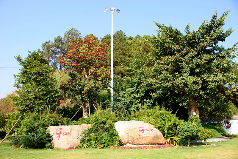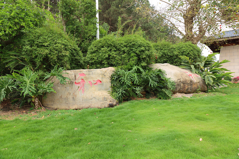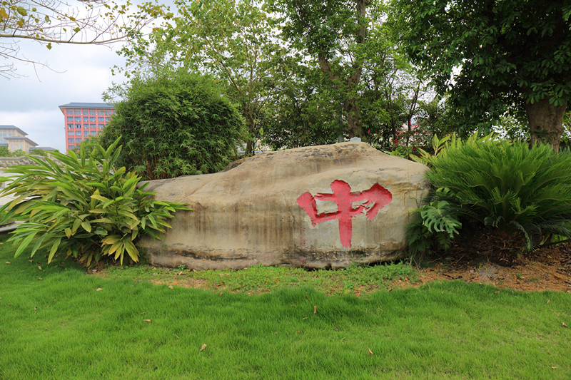 校门的两侧大石上分别镌刻有中国书法协会主席张海题写的“中”“和”朱红大字,与晨钟暮鼓楼、仲景大道等系列景观配合,象征着走进YABO鸭脖,将融入到中国传统文化的最高境界之中,那就是“致中和,天地位焉,万物育焉”。
