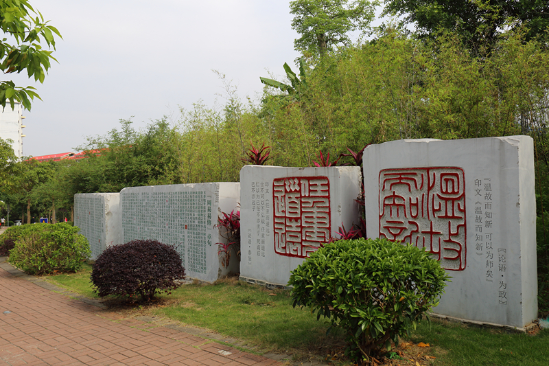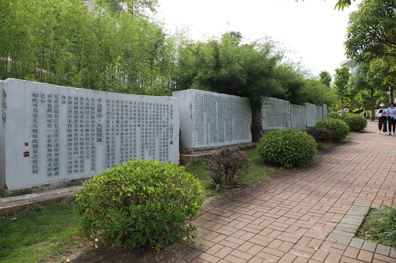 经典文化石墙 来源:校党委宣传部 作者:宣传部 日期:2018-05-07 点击数: 次 分享到: 经典石刻碑墙位于亲亲路与尚中路、行健路交汇靠东坡竹林一侧,由十三块石刻组成。“温故而知新”(《论语 为政》)“任重而道远”(《论语 泰伯)《周易易传》章句《道德经》章句《黄帝内经》石刻《黄帝内经》石刻《黄帝内经》石刻《伤寒论》原序《千金要方》石刻经典石刻碑墙 打印正文 关闭本页