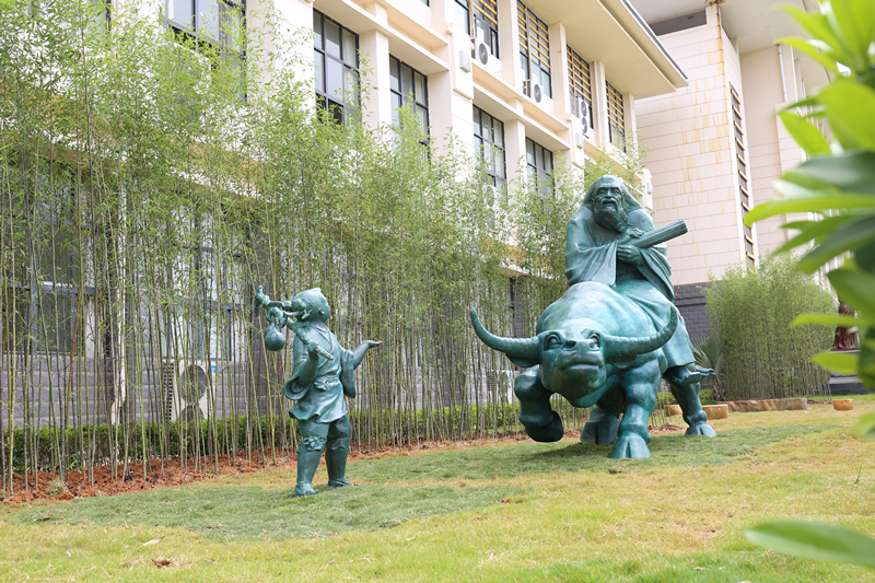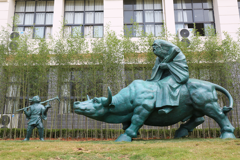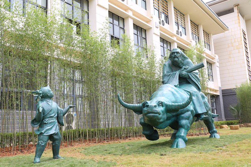 “道德五千言,乘牛出函关”,浓厚传统文化浸润着YABO鸭脖师生心田。近日,承载着“道法自然”深刻内涵的校园文化景观“老子出关”青铜雕塑在鸭脖仙葫校区落成。