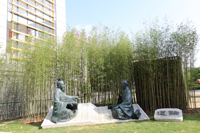 青铜组雕“论道”位于仙葫校区格物路与玉兰路十字路口的西北侧广西中医药科学实验中心旁,由我国著名雕塑家、广西美协主席石向东教授及其团队设计制作。