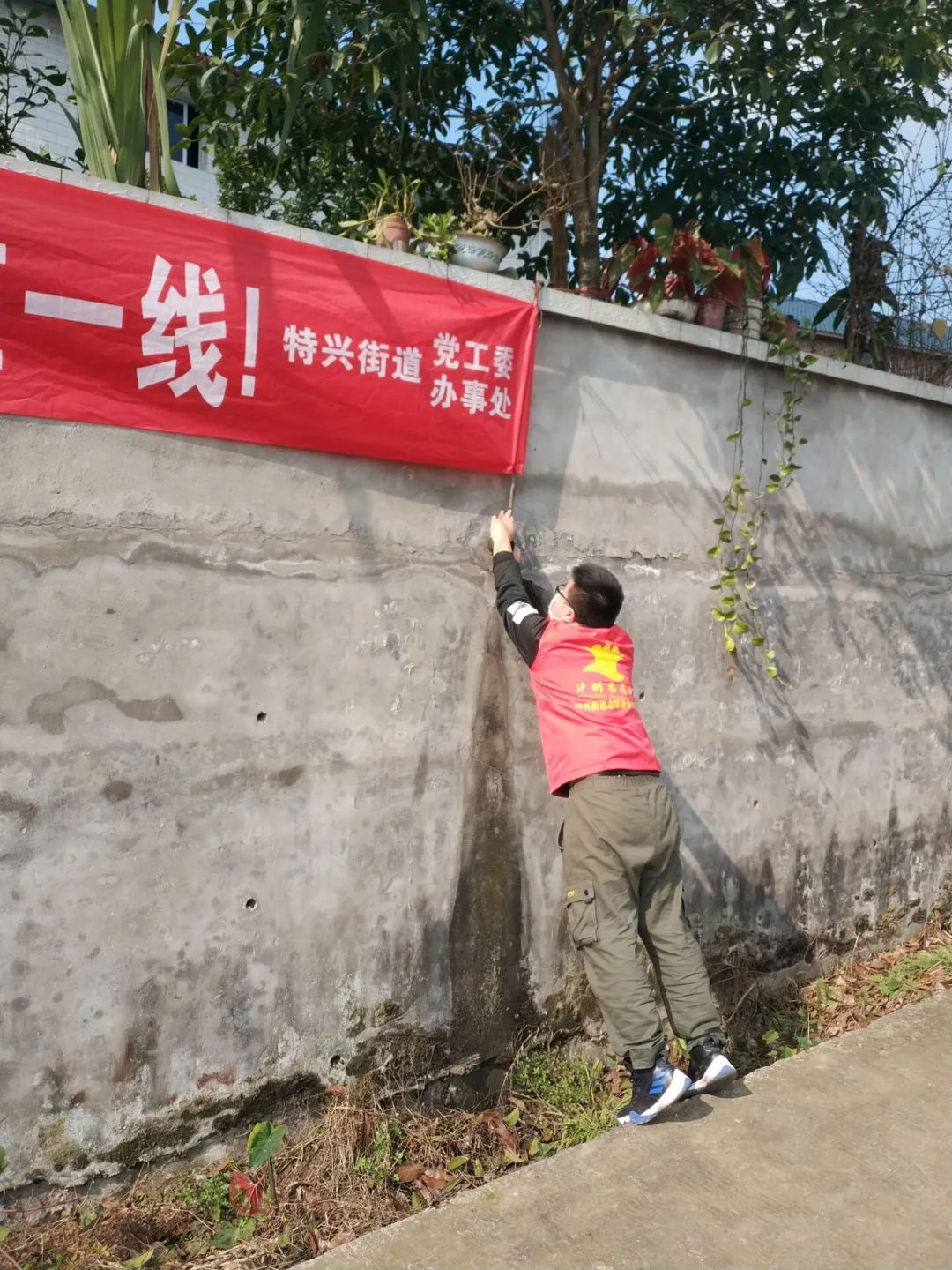 2019级研究生7班冯飞跟随宣传车到乡村每一个角落普及防疫知识,张贴防疫横幅,劝散聚集打牌人员等。