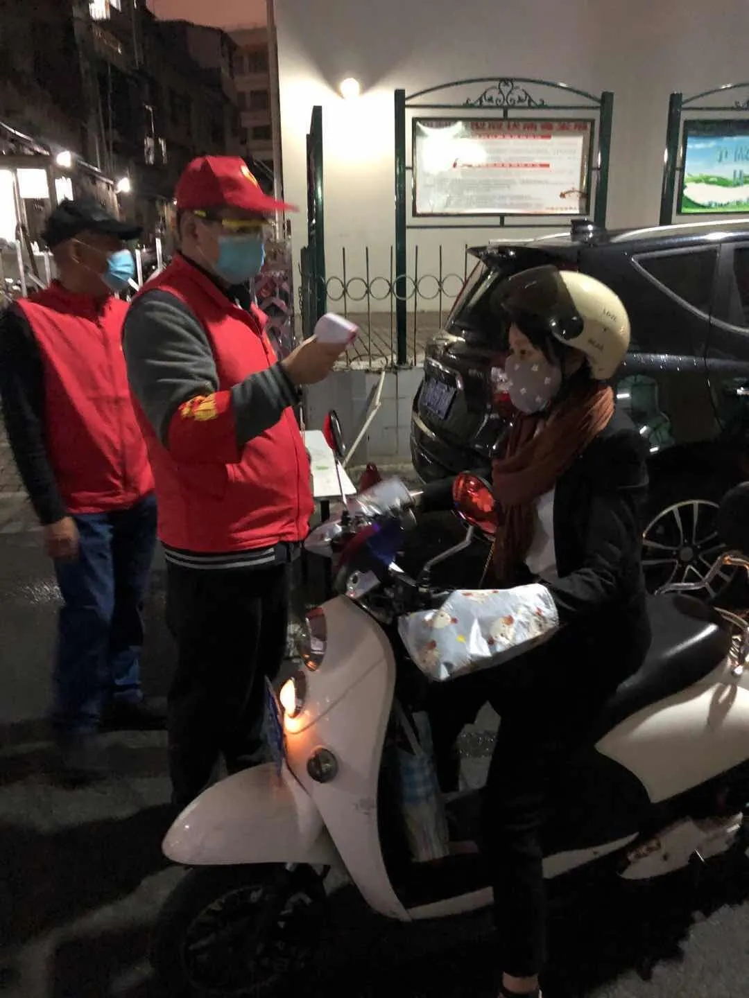 2019级研究生4班温广浩协助小区物业、社区基层干部测量进出本小区人员体温等。