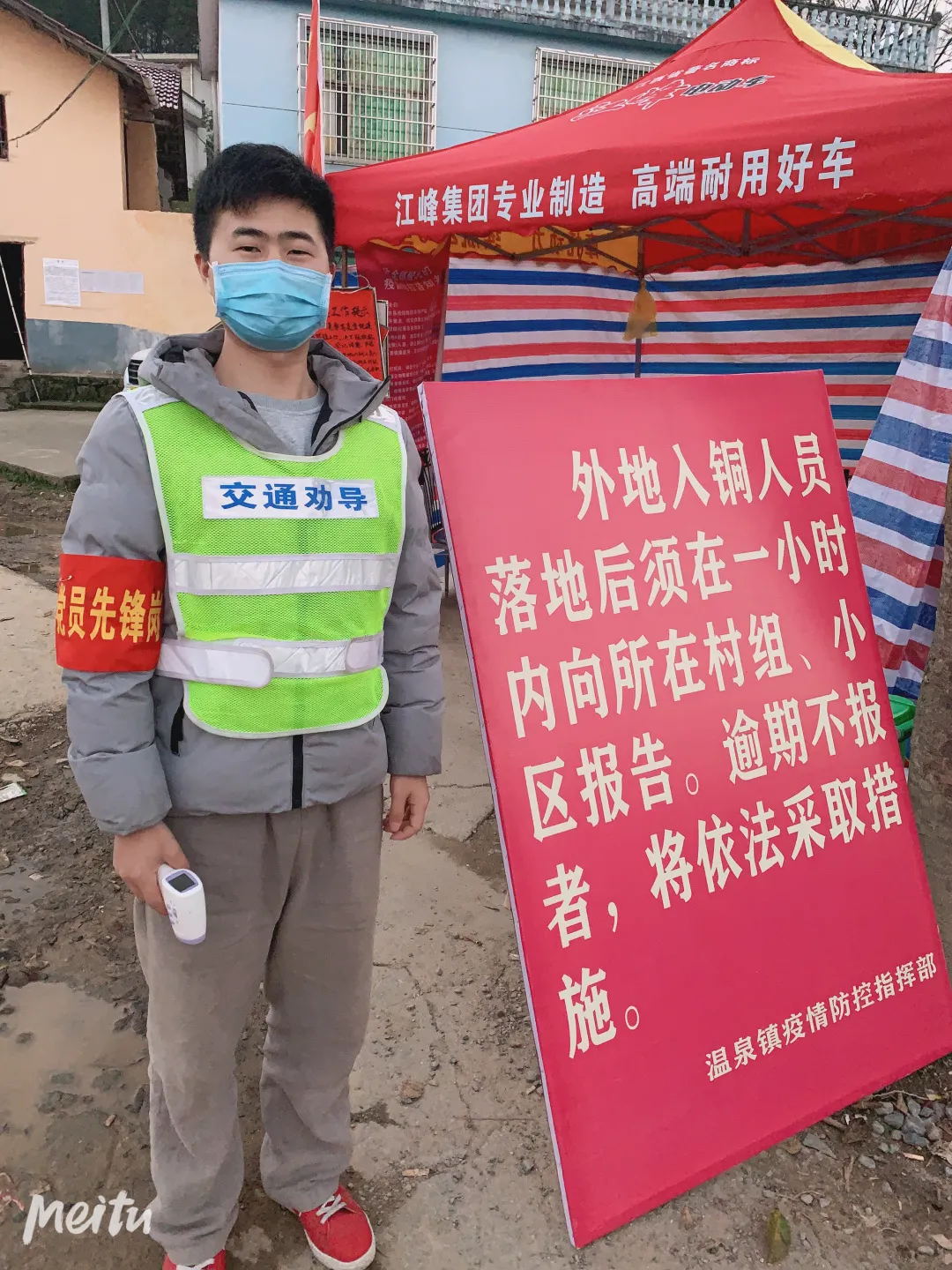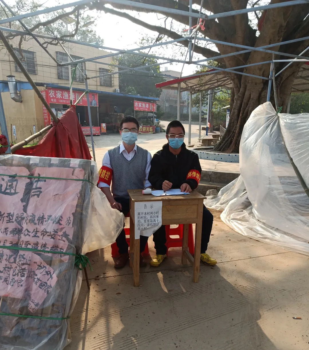 2017级研究生6班农国勇疫情期间服务于人员管控,包括禁止外来人员进村、排查本村人员出入情况(量体温、记录出入时间)等。