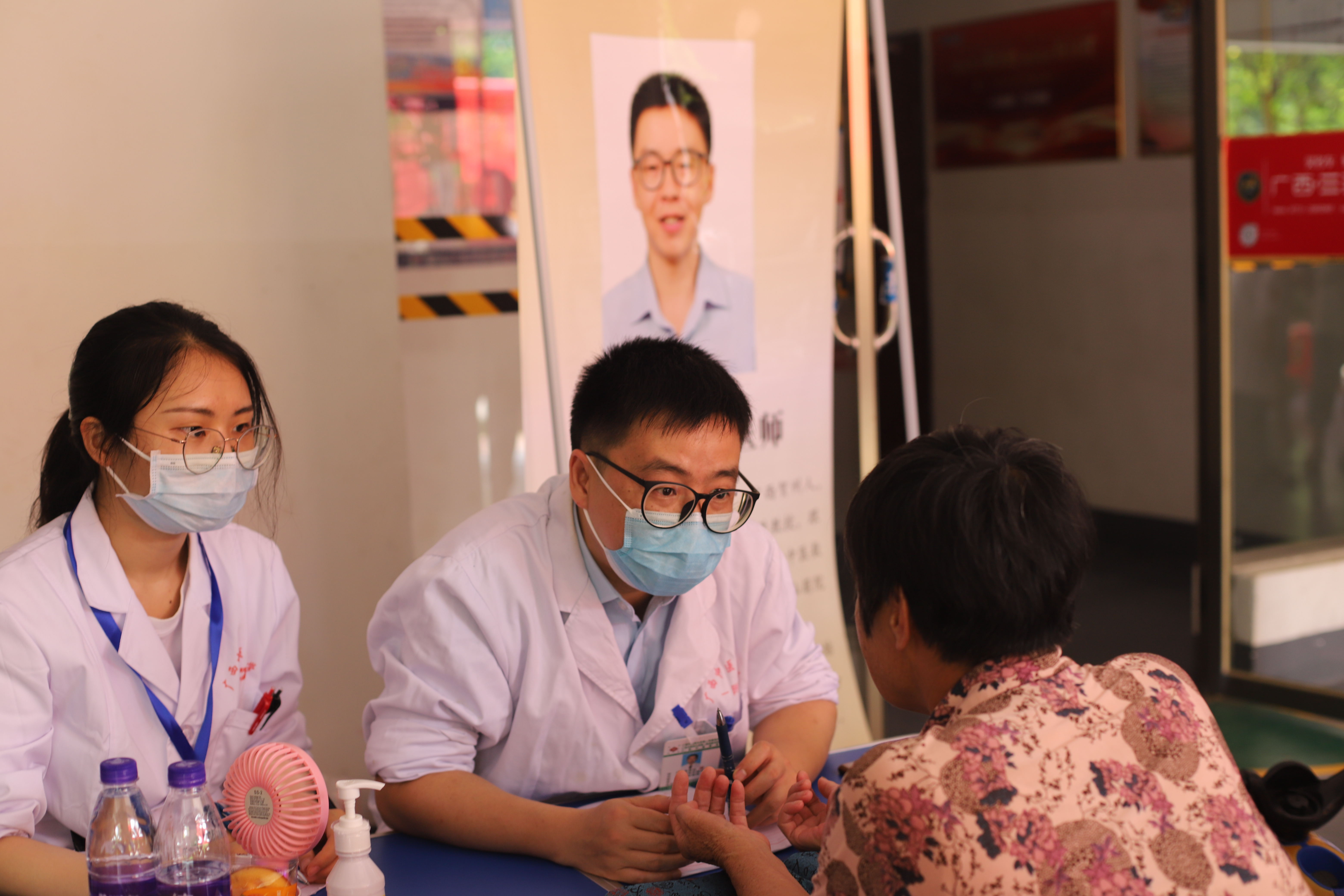 为迎接建党百年华诞,传承五四精神,推动广大青年学子学习党史并继承和发扬党的光荣传统,进一步培养“不忘初心跟党走,全心全意为人民服务”的精神,2021年5月14日,YABO鸭脖研究生院在邕宁区滨江幸福小区开展了“弘扬五四精神,义诊服务暖人心”为主题的义诊志愿服务活动,活动邀请了脾胃肝病专家黄国初医生到场坐诊。