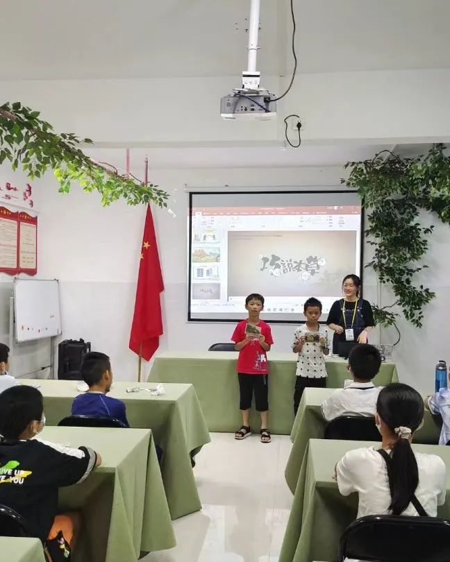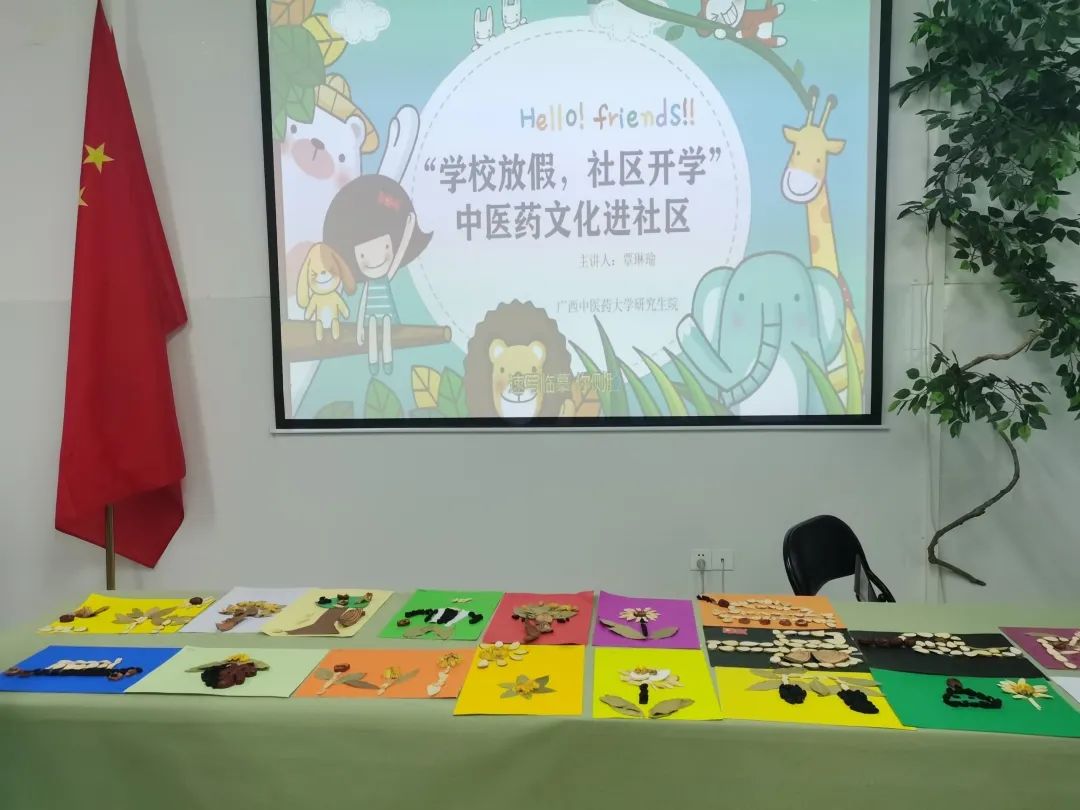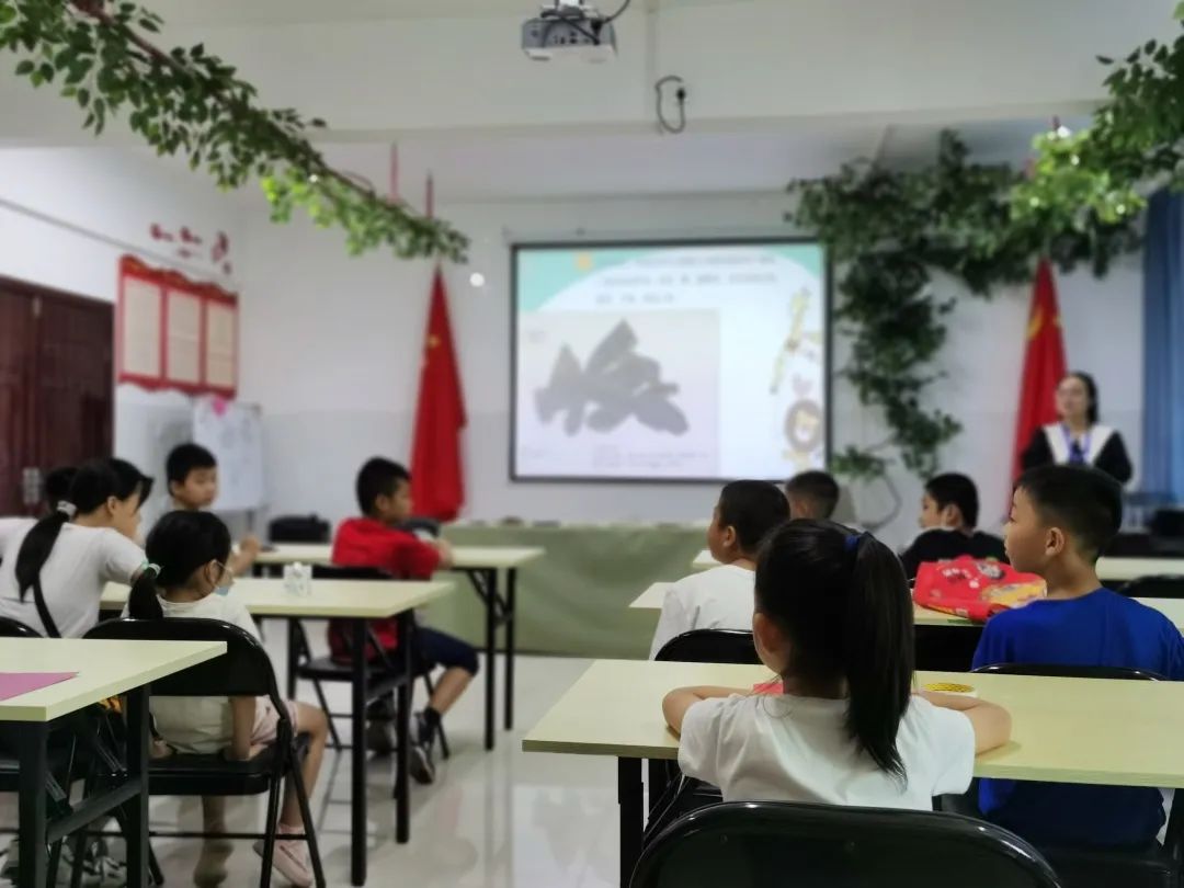 2022年7月15日,志愿者老师给小朋友们复习上一节课桂十味的五味药材,并采用图画结合的方式向小朋友们介桂十味剩下的五味药材:山豆根、鸡血藤、鸡骨草、两面针、广地龙的药效及注意事项。