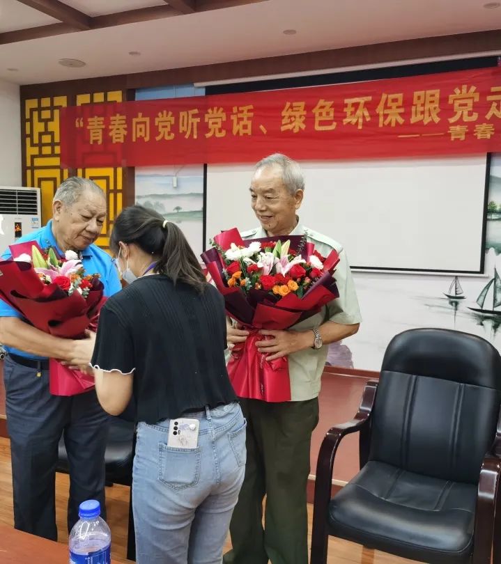 听完两位老人的故事后,感受颇深,送上鲜花表达了志愿者的敬意。