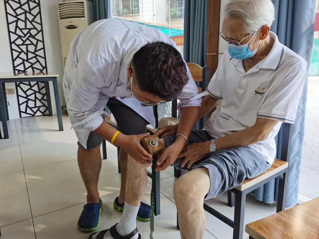志愿服务团队带来的义诊很受退役军人的欢迎,志愿者根据实际情况为他们提供相应的穴位贴敷、耳穴、艾灸等中医外治服务。