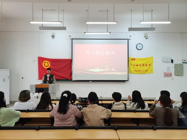 为深入学习“两会”精神,增强大学生的思想政治理论素养,4月5日晚,2020级药学3班于仙葫校区2-206教室开展的“深入贯彻学习两会精神”主题班会圆满完成。