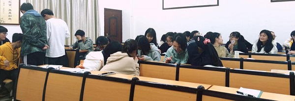 同学们认真学习两会精神
