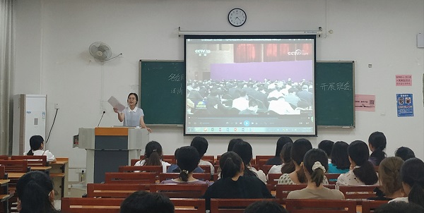 5月16日,2017级中药学二班于仙葫校区教学楼1-302开展了学习习近平总书记视察清华大学的重要讲话精神活动,本次学习活动主要以收看新闻联播的形式进行,2017级中药学二班全体成员及年级辅导员刘佳老师参加活动。