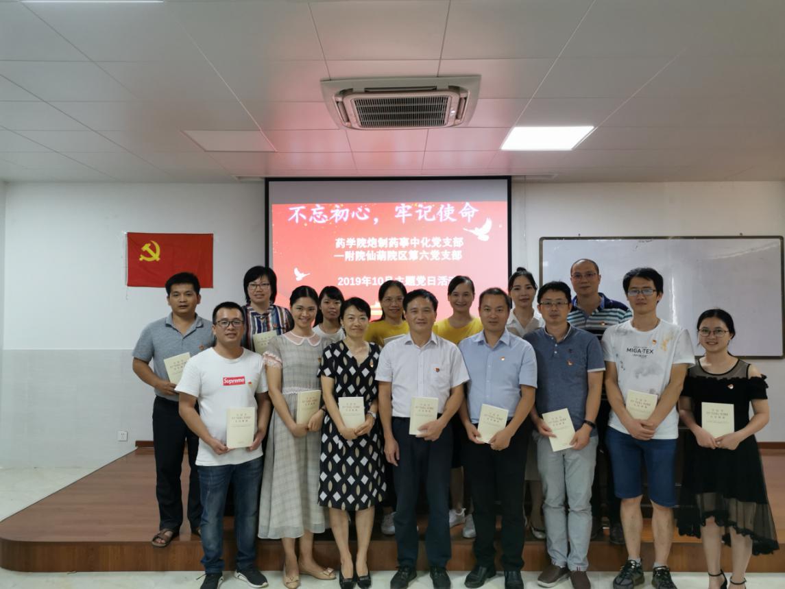 为进一步推进“不忘初心、牢记使命”主题教育的开展,2019年10月13日上午,药学院炮制药事中化党支部与一附院仙葫院区第六党支部在仙葫校区达道楼B421会议室开展了“不忘初心、牢记使命”主题党支部共建活动。药学院党委书记蒋林作为炮制药事中化党支部的成员参会。