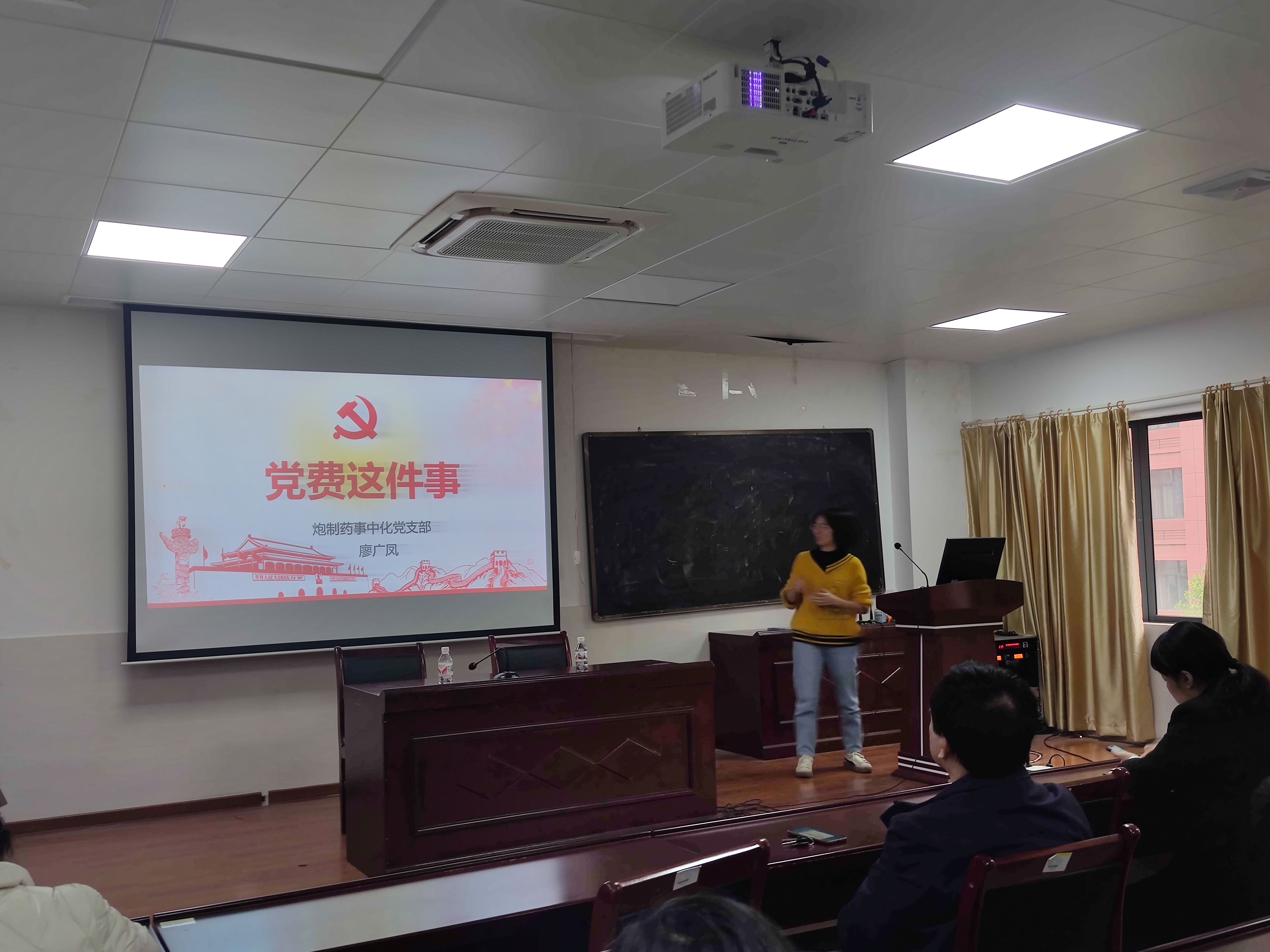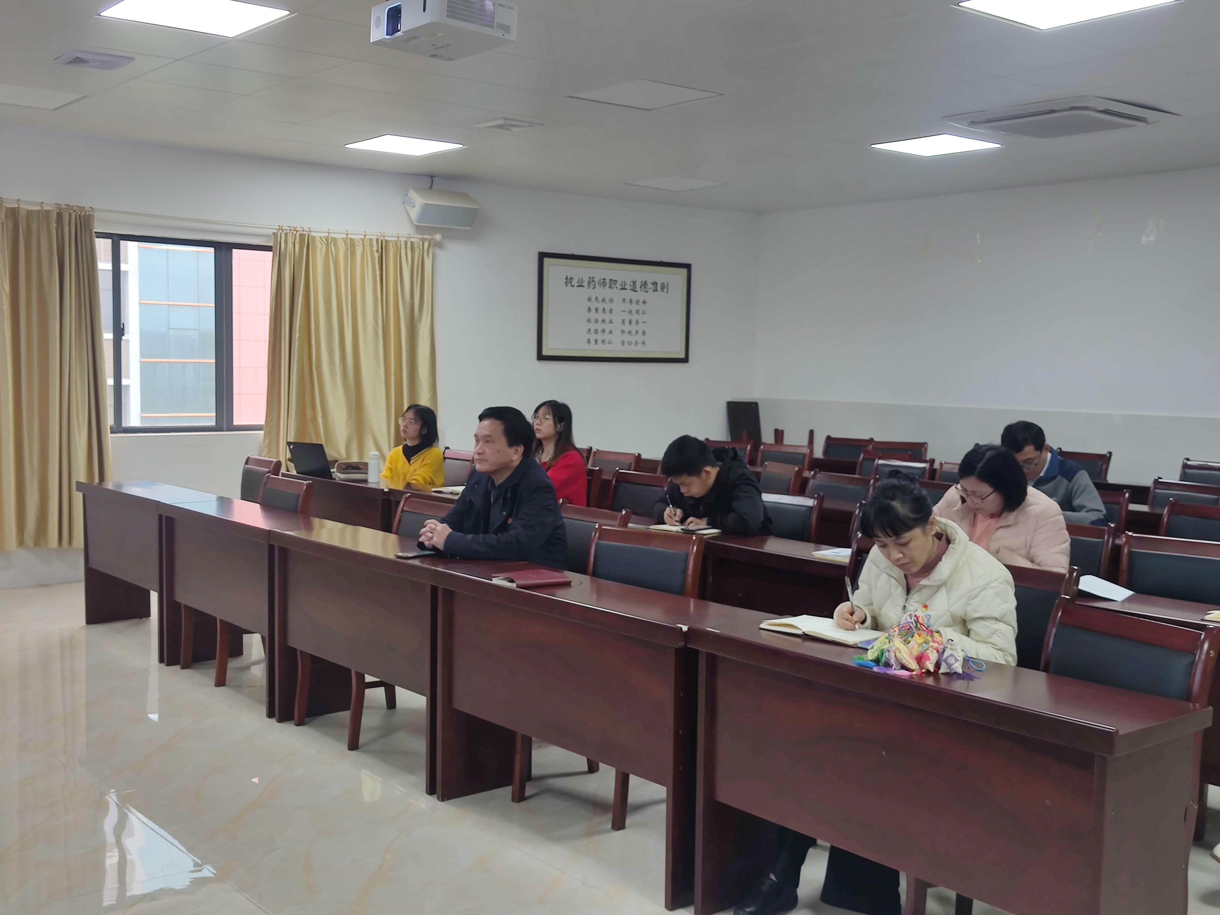 3月28日下午,药学院炮制药事中化党支部在仙葫校区达道楼B421教室开展党日主题活动。药学院党委书记蒋林同志作为党支部成员参会,活动由党支部书记曾春晖同志主持。