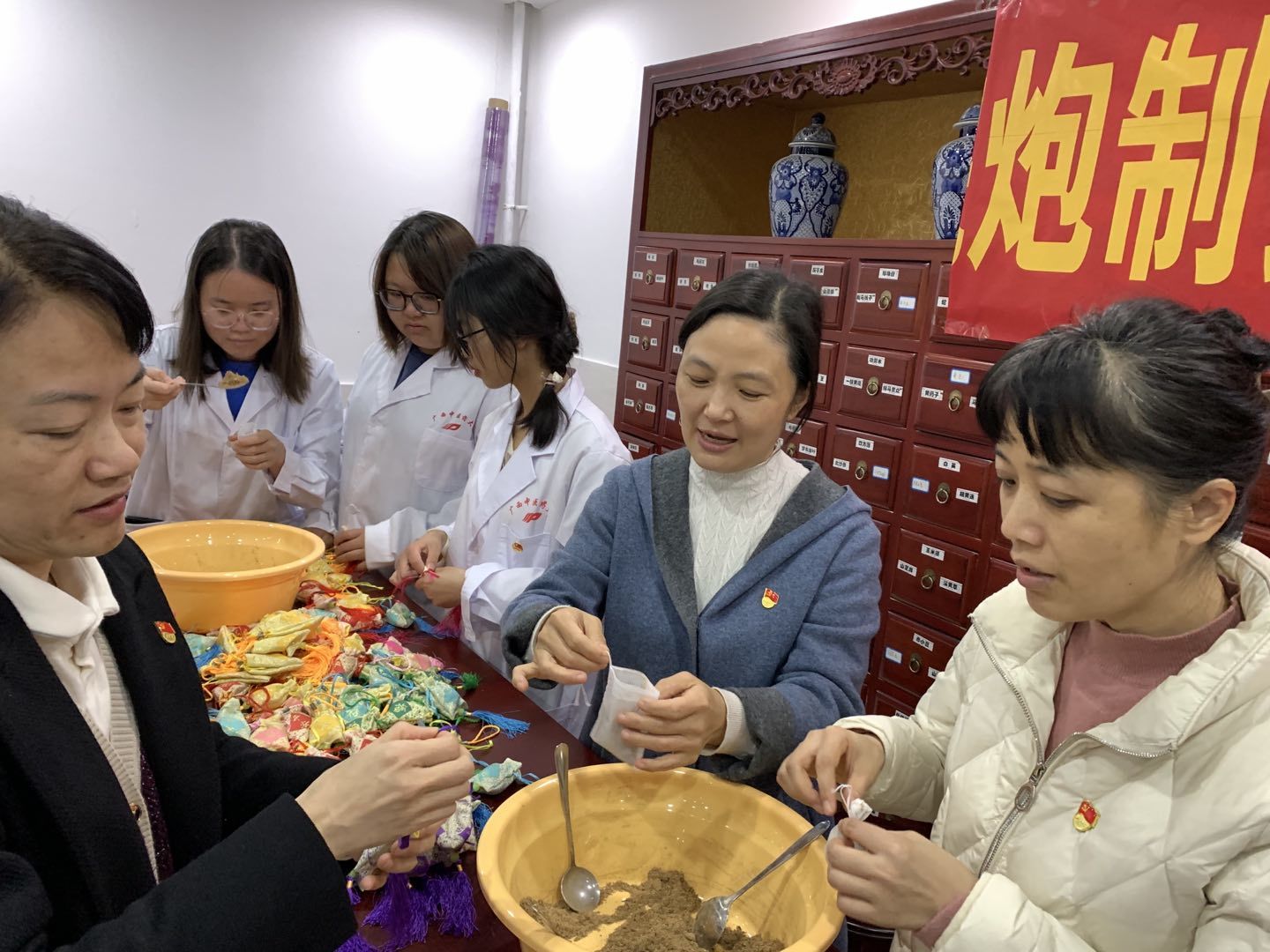 全体党员参与香囊制作活动