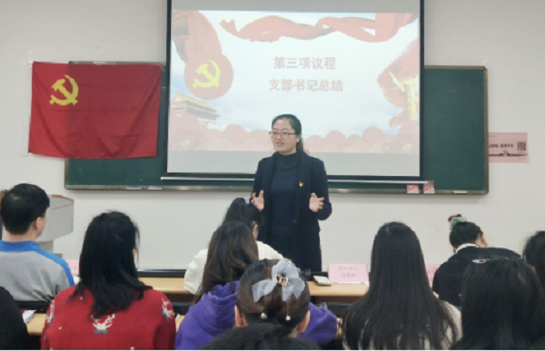 第三部分:支部书记总结。孙慧玲老师强调一个党员就是一面旗帜,要牢记党员身份,在方方面面规范自己的言行举止;加强理论修养,不断巩固、强化正确的入党动机。此外,孙老师嘱咐考研的同学要稳住心态按部就班的学习,找工作的同学要多尝试、积极就业。