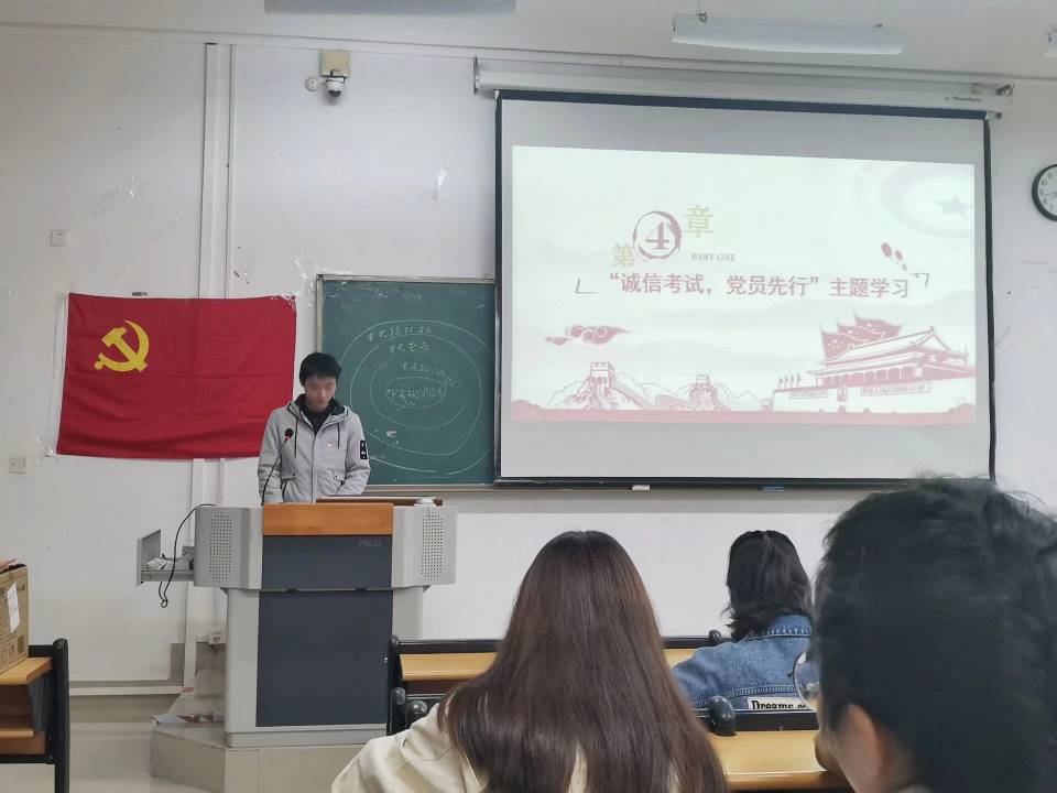 本次活动由支部书记孙慧玲老师带大家学习,由宣传委员申雨同志主持开展“弘扬优良家风”主题党课,由支部副书记苏嘉福同志带领学习“诚信考试,党员先行”理论知识,并对在支部12月“诚信考试,党员先行”主题活动中表现突出的同学给予表彰。