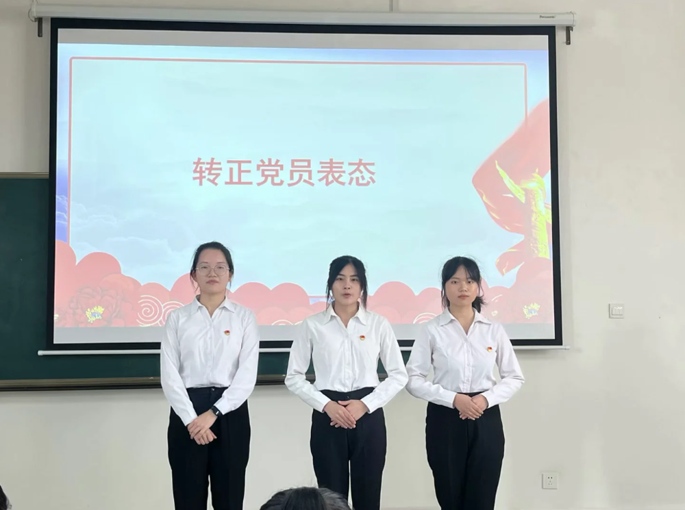 大会议程第一项为讨论接收预备党员,吴梦琪等4名发展对象汇报入党志愿和个人情况,入党介绍人介绍其有关情况,支委会报告对发展对象的审查情况,与会党员讨论,经无记名投票表决,一致决定将吴梦琪等4名发展对象接收为中共预备党员,并由支部书记孙慧玲为其佩戴党徽。议程第二项为讨论预备党员转正,陈婕兰等3名预备党员汇报其在预备期间的现实表现情况,支委会介绍预备党员教育考察情况,与会党员经无记名投票表决,一致同意陈婕兰等3名中共预备党员按期转正。议程第三项为支委换届选举,与会成员充分讨论,经无记名投票表决,选出孙慧玲等3位新一届支委成员。最后支部书记孙慧玲为此次大会做总结,提出全体党员应该始终牢记政治身份,保持入党初心,为党和人民不懈奋斗。
