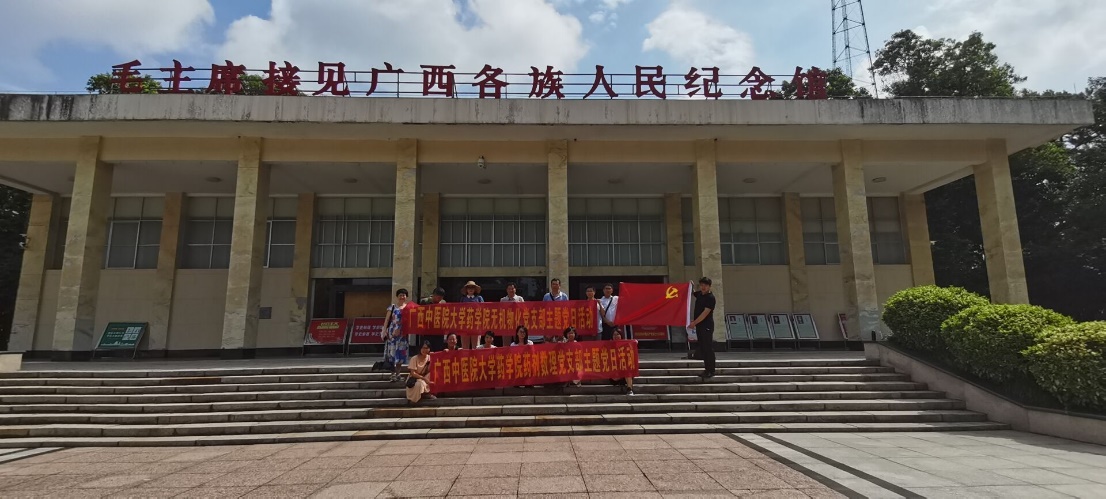为深入党史学习,促进支部建设,2021年7月6日下午,药学院无机物化党支部联合药剂数理党支部在人民公园开展了革命烈士纪念活动和“毛泽东接见广西各族人民纪念馆”参观活动。