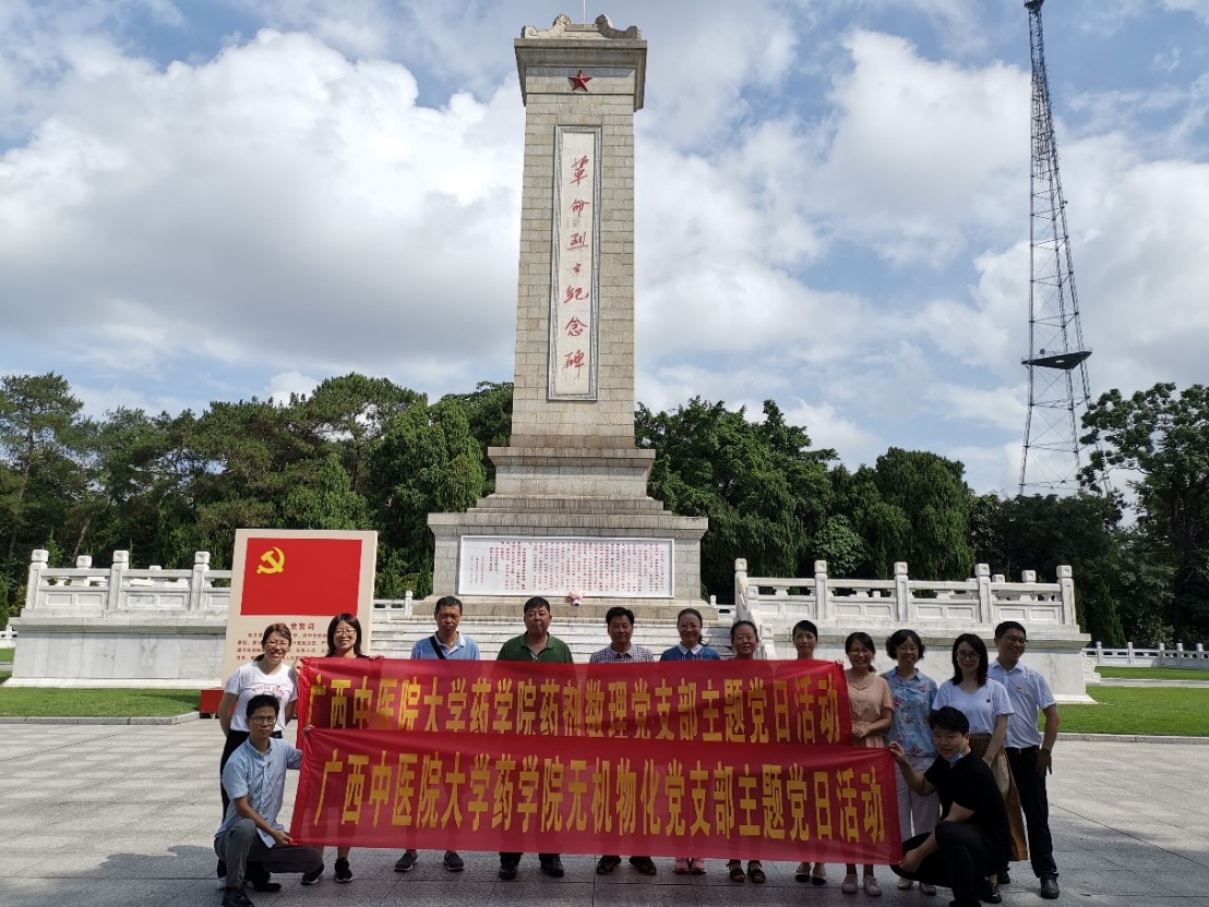 为深入党史学习,促进支部建设,2021年7月6日下午,药学院无机物化党支部联合药剂数理党支部在人民公园开展了革命烈士纪念活动和“毛泽东接见广西各族人民纪念馆”参观活动。