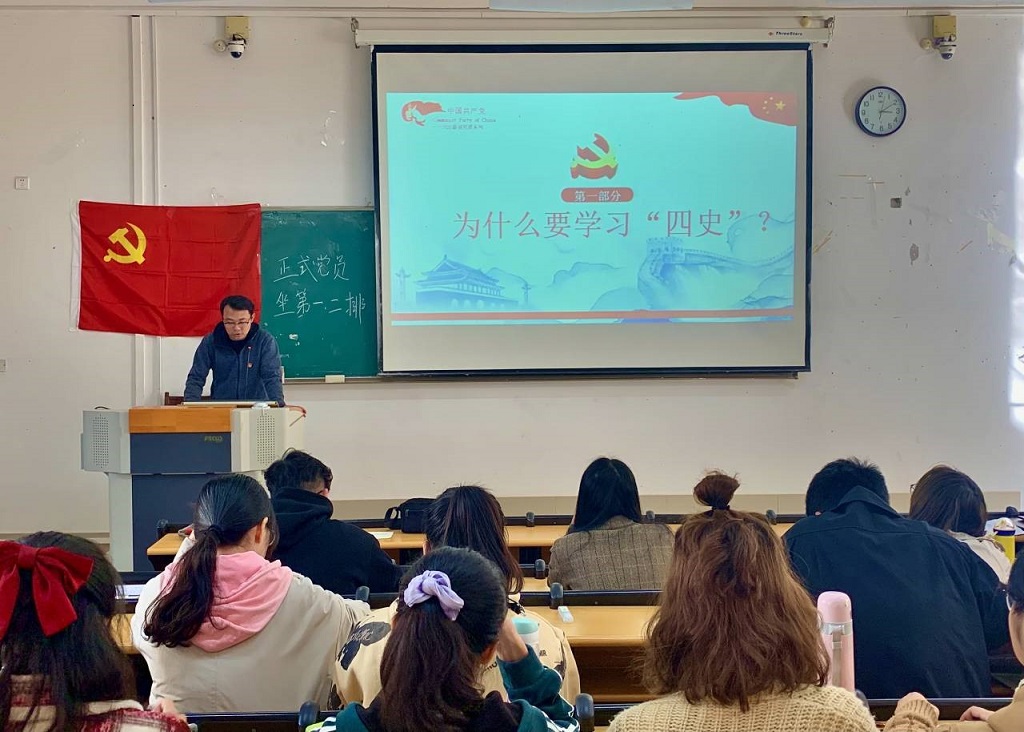 黄鑫老师分别从为什么要学习“四史”、深刻理解“四史”的重要价值 、学习“四史”所要达到的目标等方面为大家解读学习“四史”的必要性,指出作为一名党员,要认真学习“四史”,无论是党史、新中国史、改革开放史、社会主义发展史,特别是将要接收为预备党员的发展对象和即将转正的预备党员跟是要加强这些党的相关理论、历史知识的学习。同时作为一名党员应时刻把人民群众的利益放在第一位,有全心全意为人民服务的决心,做好自己的本职工作,在实现个人价值的同时,也为社会的发展,为人类进步贡献了自己的微薄力量。