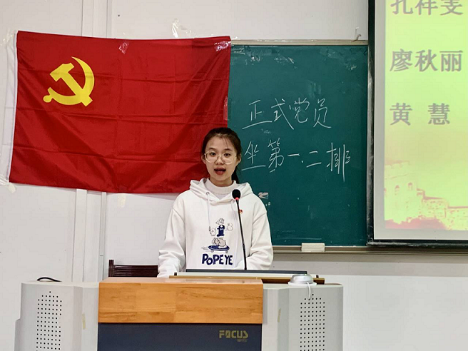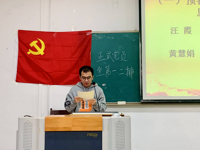 首先,由孔祥雯等11名发展对象汇报报对党的认识、入党动机等相关情况,入党介绍人及支部委员介绍发展对象主要情况,支委报告发展对象政治审查情况,与会党员对发展对象发表意见,不记名投票,参会党员举手表决一致通过同意接收为中共预备党员;随后预备党员转正会议过程中,汪霞等7名预备党员同志依次上台汇报自己在预备期间的思想、工作情况,支部逐一通过无记名投票表决的方式,一致通过了他们的入党转正申请,同意接收为中共党员;最后,黄鑫老师带领新党员进行入党宣誓,老党员重温入党誓词。