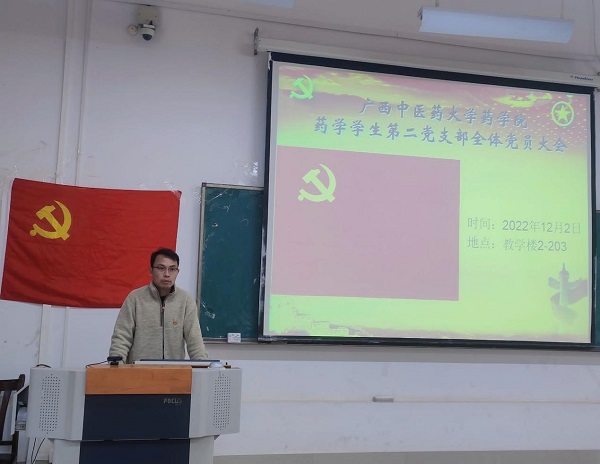 12月2日下午,药学院药学学生第二党支部在仙葫校区教学楼2-203教室召开接收中共预备党员暨中共预备党员转正支部大会。会议由支部书记黄鑫同志主持,共有21名党员,14名预备党员,8名发展对象,35名入党积极分子参会。