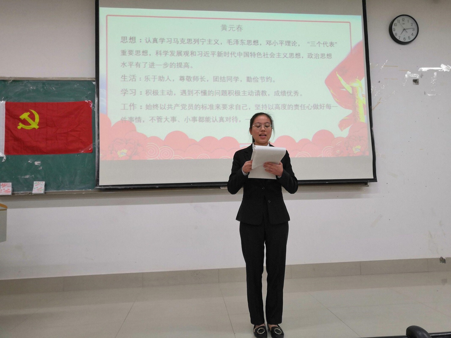 黄元春同志汇报预备期个人情况