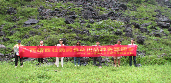 中药商品与药事管理教研室黄志其老师带队壮瑶民族药调研队到靖西进行壮药“药食两用”品种资源查活动 发布时间:2019-09-03 22:08:52 浏览次数: 次 【字体:小 大】 2019年7月15日至17日,为增进同学们对广西壮药“药食两用”品种的了解,鸭脖壮瑶民族药调研队靖西分队在中药商品与药事管理教研室黄志其老师的带领下,赴广西靖西市进行壮药“药食两用”品种资源调查。 通过本次调查,同学们收集和了解到二十多种“药食两用”壮药,并将采集到的部分壮药压制成蜡叶标本,进一步提高同学们的动手能力。 黄志其老师与壮瑶民族药调研队学生合影 分享到: 【打印正文】