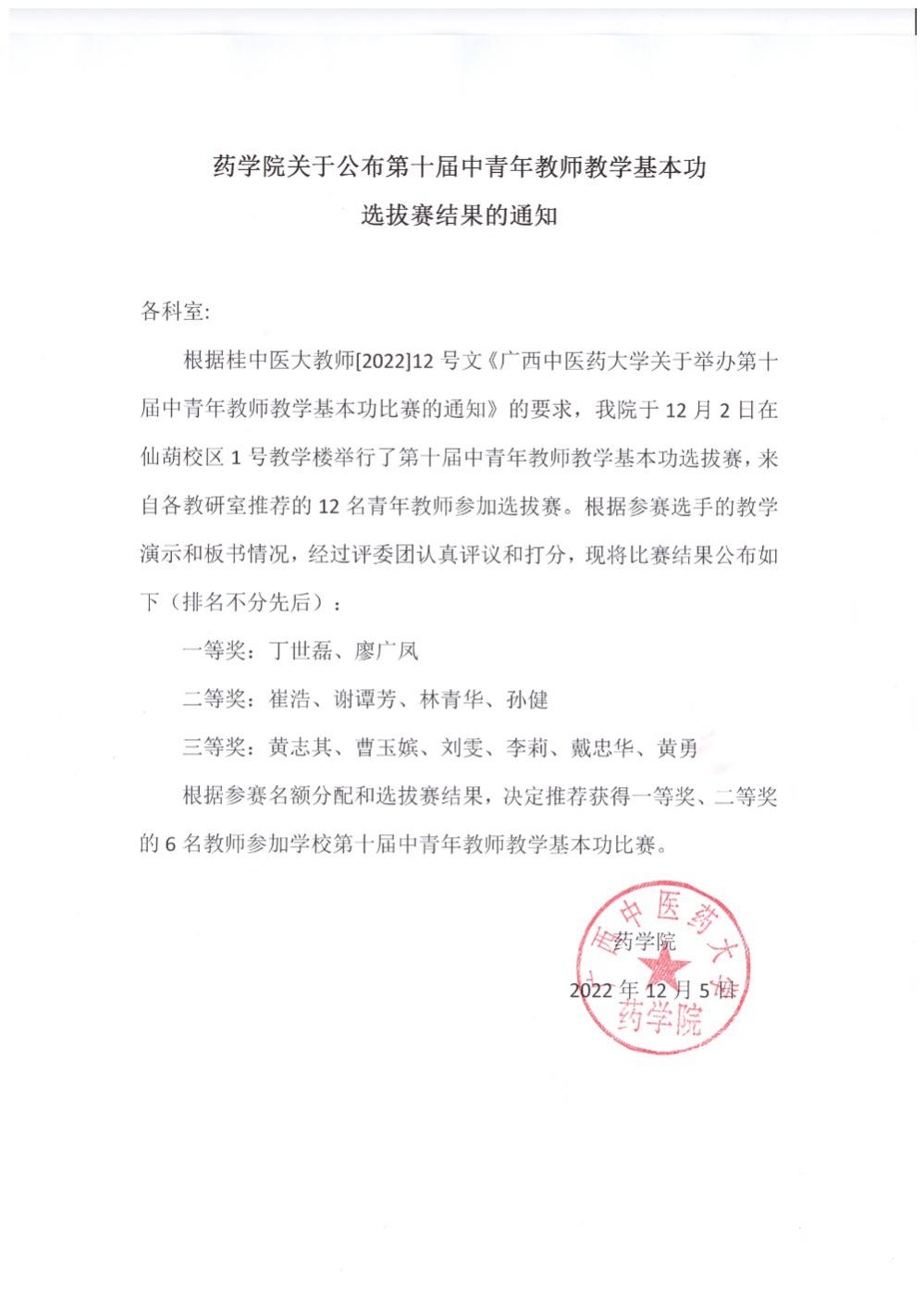丁世磊老师参加药学院第十届中青年教师教学基本功选拔赛荣获一等奖 来源:药学院 作者:图、文/丁世磊 发布时间:2023-05-19 17:32:10 浏览次数: 次 【字体:小 大】 无机化学与物理化学教研室丁世磊老师参加,药学院于12月2日下午在1栋教学楼举办的“药学院第十届中青年教师教学基本功选拔赛”荣获一等奖。本次选拔赛的选手由各教研室选拔推荐产生,选拔赛分两组进行,每位选手进行20分钟的教学演示。图 药学院第十届青年教师教学基本功选拔赛结果 分享到: 【打印正文】