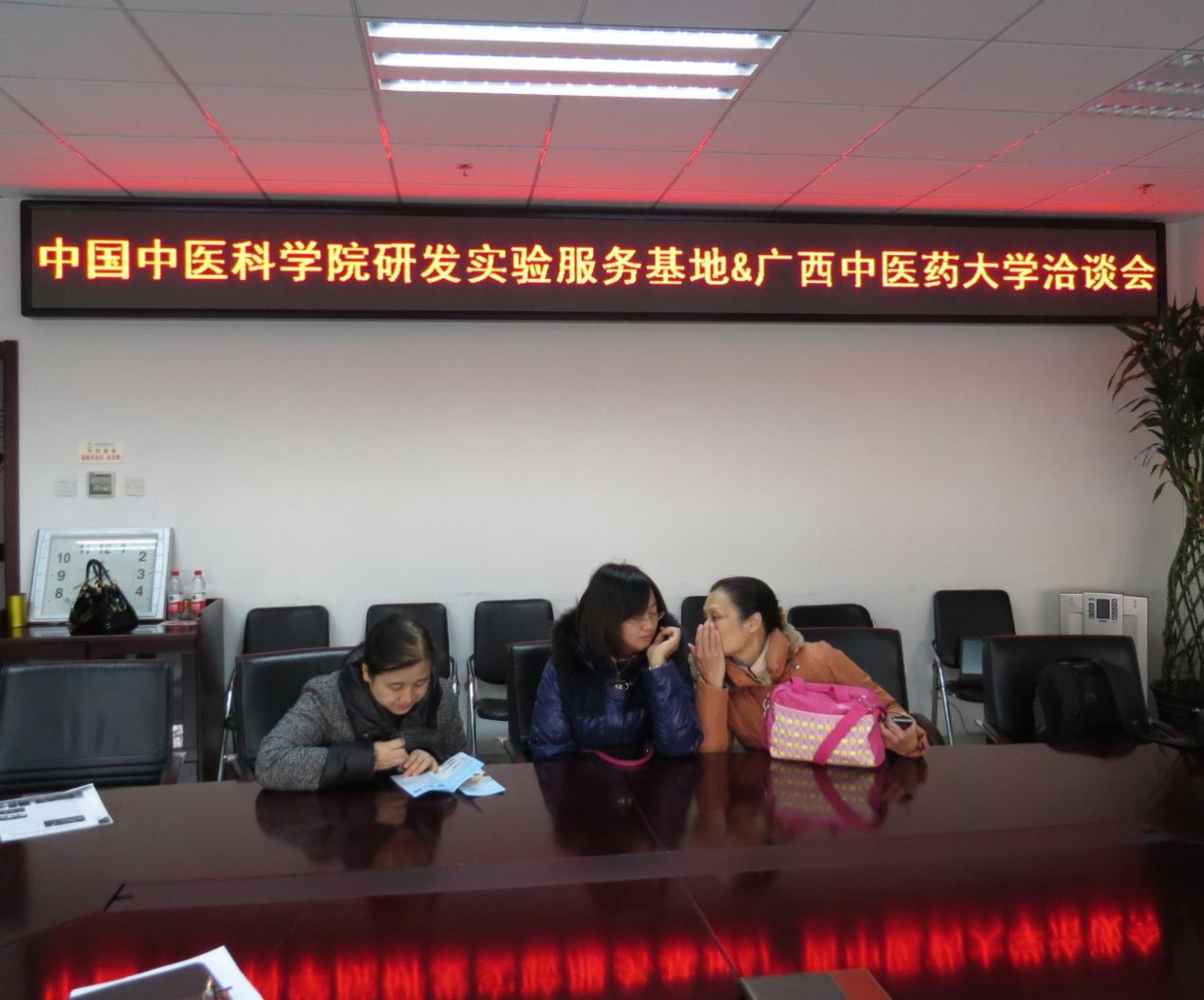 经过申请批准,由教研室主任钟益宁带领有机化学教研室骨干教师邓超澄、何春玲,贾智若和霍丽妮于2016年1月6日——1月9日到天津中医药大学和北京市中国中医科学院医学实验中心进行调研、学习活动。1月7日上午,天津中医药大学中药学院赵骏老师等热情接待YABO鸭脖药学院有机教研室的代表团,双方就教学、科研和教研室的建设和管理等诸多方面展开深入探讨,初步探索科室相关合作事宜,并参观了中药学院的教学、科研成果。1月7日晚上乘坐动车到达北京,入住中国中医科学院中研宾馆,1月8日上午,在代金刚、杨伟峰等老师的安排下,首先参观了中国中医科学院医学实验中心的六个实验室及其进行科研成果,其次参与了由中国中医科学院医学实验中心举行的洽谈合作和教学科研座谈活动,双方就科研等方面的合作进行深入讨论,会上,代金刚老师还赠送了中国中医科学院医学实验中心的科研论文集。1月9日带领科室教师安全返回南宁,学习、调研活动取得圆满成功。通过学习、调研活动,几位教师都深深感受到学习活动受益匪浅,开拓视野,学习了兄弟院校的先进教学理念和科研成果,为今后的双方在教学、科研合作以及科室建设奠定一定基础。
