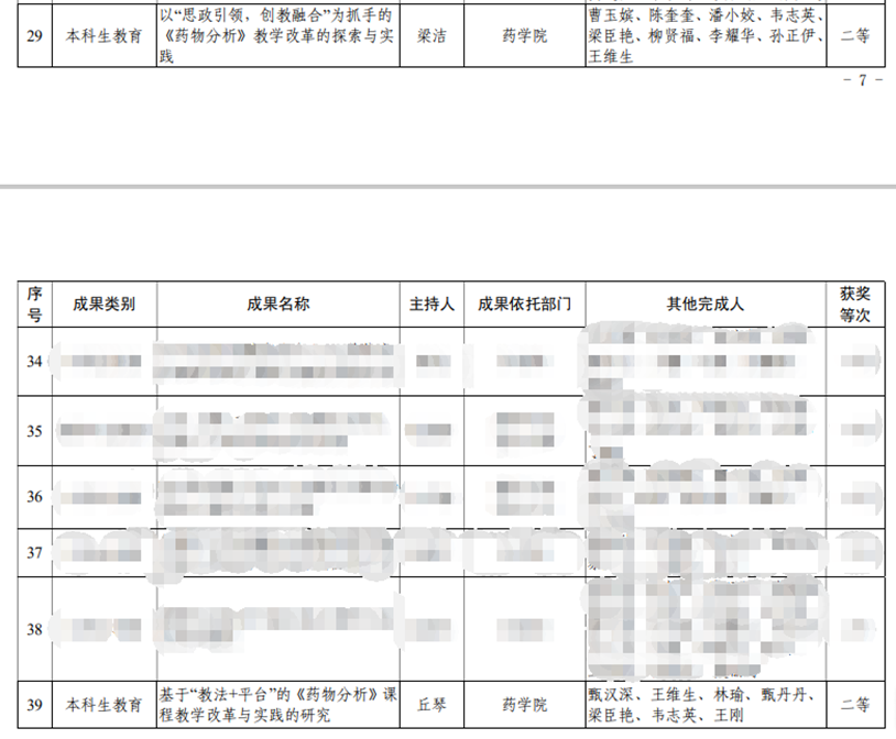 药物分析教研室梁洁老师、丘琴老师喜获鸭脖教学成果奖 作者:图/文/陈奎奎 发布时间:2023-05-24 12:11:51 浏览次数: 次 【字体:小 大】 药物分析课程是药物分析教研室承担的主干课程之一,曾经获评广西精品课程。药物分析教研室老师近年来持续对药物分析课程开展教学改革研究,其中,教研室梁洁老师、丘琴老师主持的以“思政引领,创教融合”为抓手的《药物分析》教学改革的探索与实践、基于“教法+平台”的《药物分析》课程教学改革与实践的研究均荣获第十二届YABO鸭脖教学成果奖二等奖。 图1 教学成果奖二等奖截图 分享到: 【打印正文】