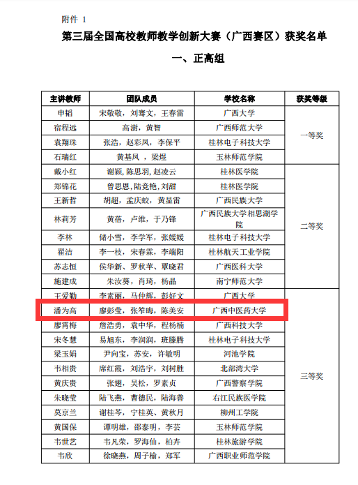 中药化学教研室在第三届全国高校教师教学创新大赛(广西赛区)获三等奖 来源:中药化学教研室 作者:图文/廖彭莹 发布时间:2023-04-21 08:59:54 浏览次数: 次 【字体:小 大】 近期,由广西壮族自治区教育厅指导,广西高等教育学会主办的第三届全国高校教师教学创新大赛(广西赛区)决赛在玉林师范学院圆满结束。中药化学教研室潘为高教授主持申报的《天然药物化学》课程创新通过层层选拔,最终获得正高组三等奖的好成绩,向区内高校全面充分地展示了鸭脖天然药物化学教学团队针对教学痛点所进行课程创新的理念、思路、方法、途径和成果。 分享到: 【打印正文】