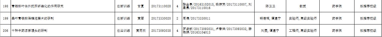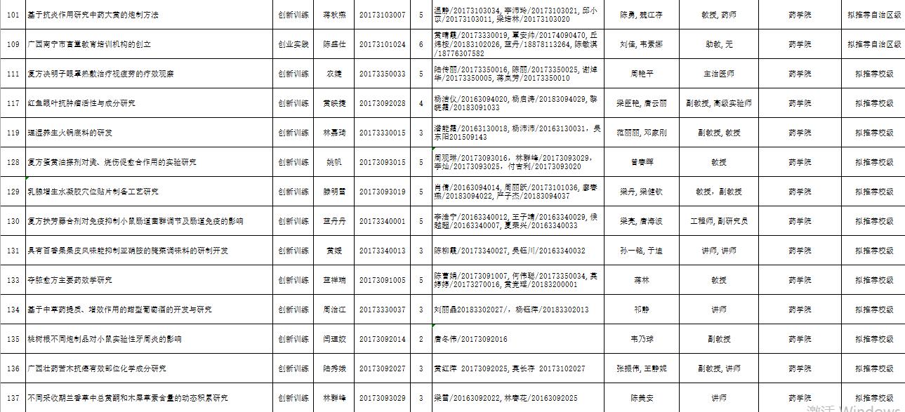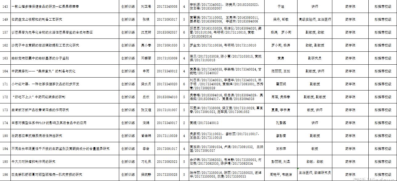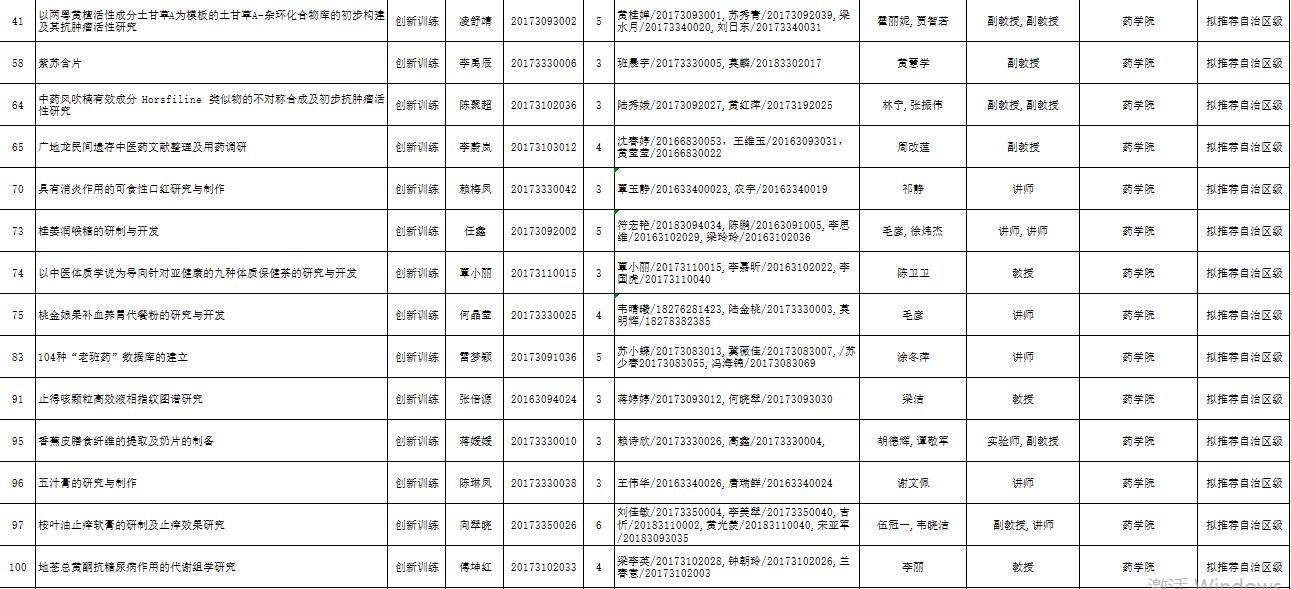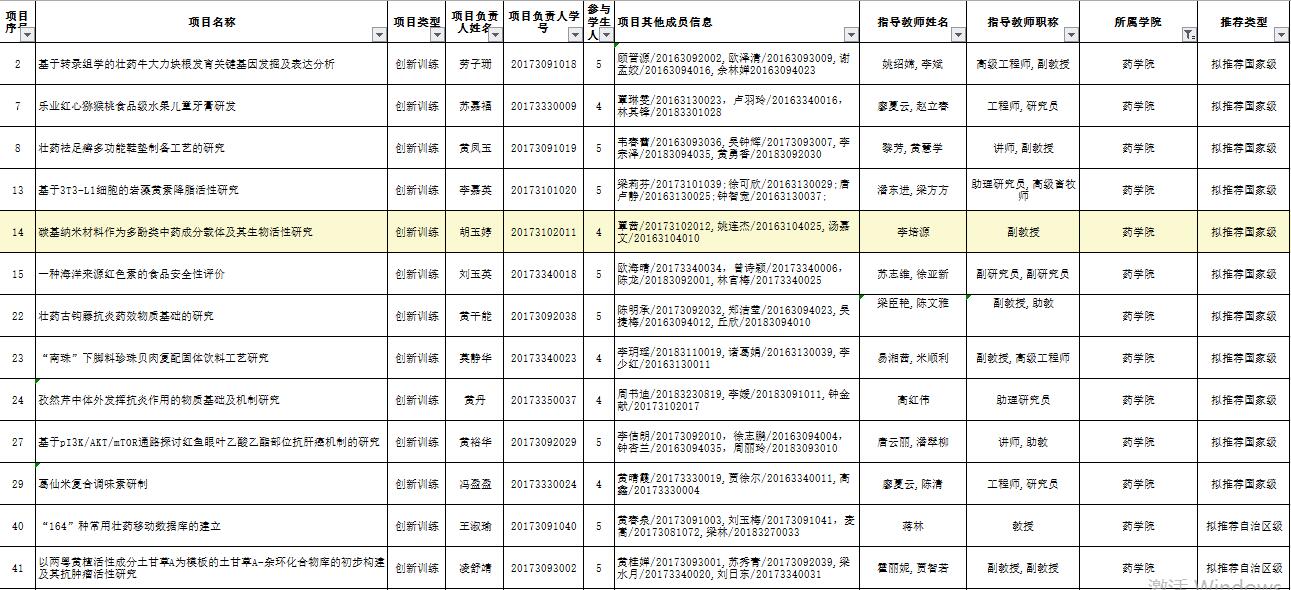 YABO鸭脖全校共立项210项,药学院立项57项,其中拟推荐国家级11项,拟推荐自治区级17项,拟推荐校级29项,药学院2019年大创项目人才辈出,立项喜获大丰收,祝药学院越办越好!