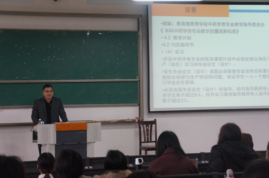 根据学校本科人才培养方案的要求,毕业实习是教学计划的重要组成部分,是后期实践教学必不可少的环节。为进一步加强本科实习生的规范化管理,使进点实习生尽快适应从在校学习到工作岗位角色的转换,药学院于2017年12月27日至2018年1月9日对药学院2014级中药、药学、食品类各专业共500余名学生进行了实习岗前培训。培训内容包括:实习管理制度与规定、实习安全和纪律教育、毕业生就业定位指导、YABO鸭脖药学类学生实习经费管理暂行规定、医药企业销售流通工作、开题报告与综述撰写、新版GMP要点要求,以及一系列论文专题讲座。本次培训还特邀了鸭脖中药、药学类专业的兼职教师,广西纵横药业有限公司廖驱董事长为实习生讲解医药企业销售流通工作要求与技巧,得到学生的好评。