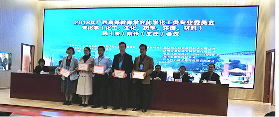 11月29-30日,第十九届广西高校大学生化学化工类学术创新竞赛颁奖仪式在桂林理工大学空港校区举行,鸭脖获得一等奖2项,二等奖3项,三等奖3项,同时获得优秀组织奖。是历年来获奖成绩最好的一次。