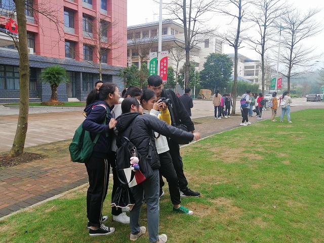 理论课讲授完毕,黄鑫和吴玉峰带领学生们走出教室,进行实践作业:一、用运动模式拍出一张汽车定格照片;二、用光圈优先模式拍出一张背景虚化照片;三、用快门优先模式拍出一张流动照片。在两位老师的悉心指导下,同学们的摄影兴趣高涨,拍出多幅理想的照片。
