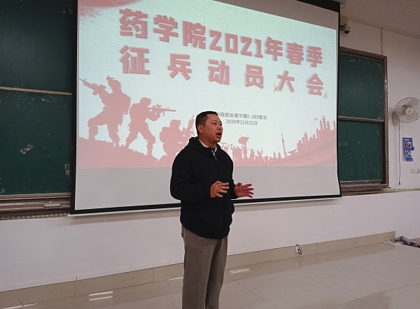 为响应国务院、中央军委号召,深入贯彻落实学校征兵工作会议精神,激发药学院适龄大学生参军报国热情,12月22日下午,我院在仙葫校区教学楼1-203教室顺利召开2021年春季征兵动员大会。