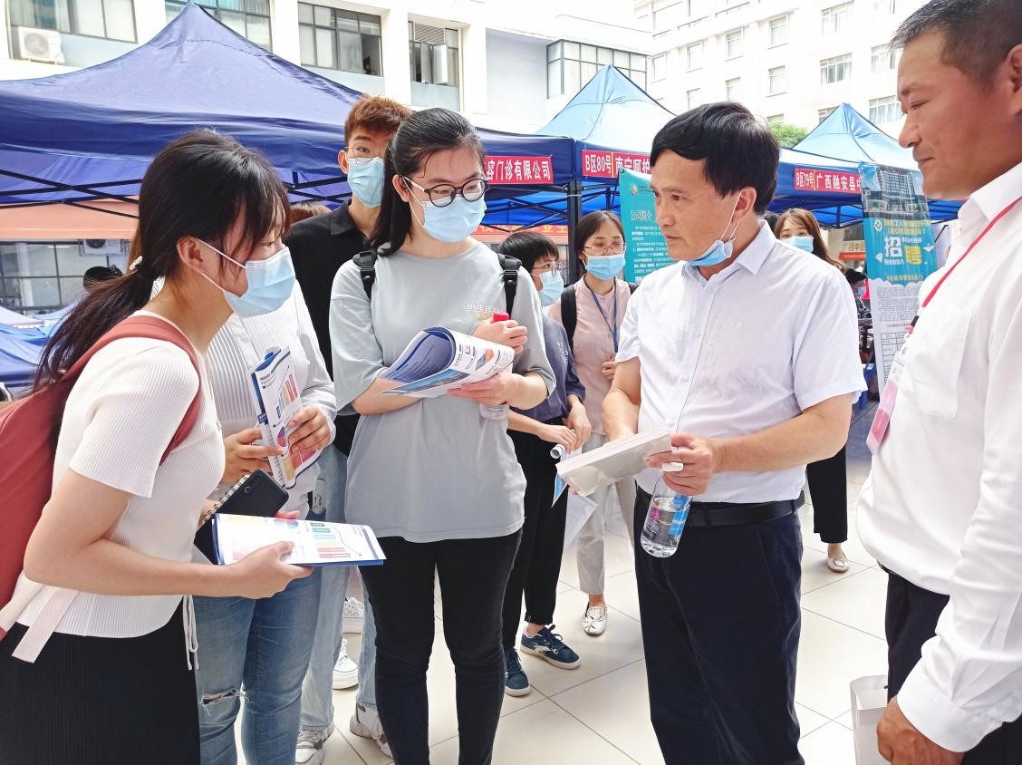 为做好药学院2021届毕业生的就业推荐工作,6月11日,药学院党委书记蒋林带领毕业班辅导员、班主任深入鸭脖明秀校区双选会现场指导毕业生就业。