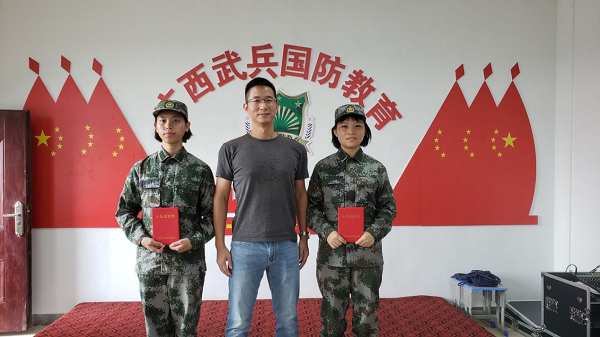 9月11日上午,药学院2名学子在广西武兵国防教育基地参加鸭脖2021年秋季入伍大学生欢送会。她们身着迷彩军装,怀揣卫国戍边的远大志向,即将奔赴绿色军营,开启新的人生旅程。