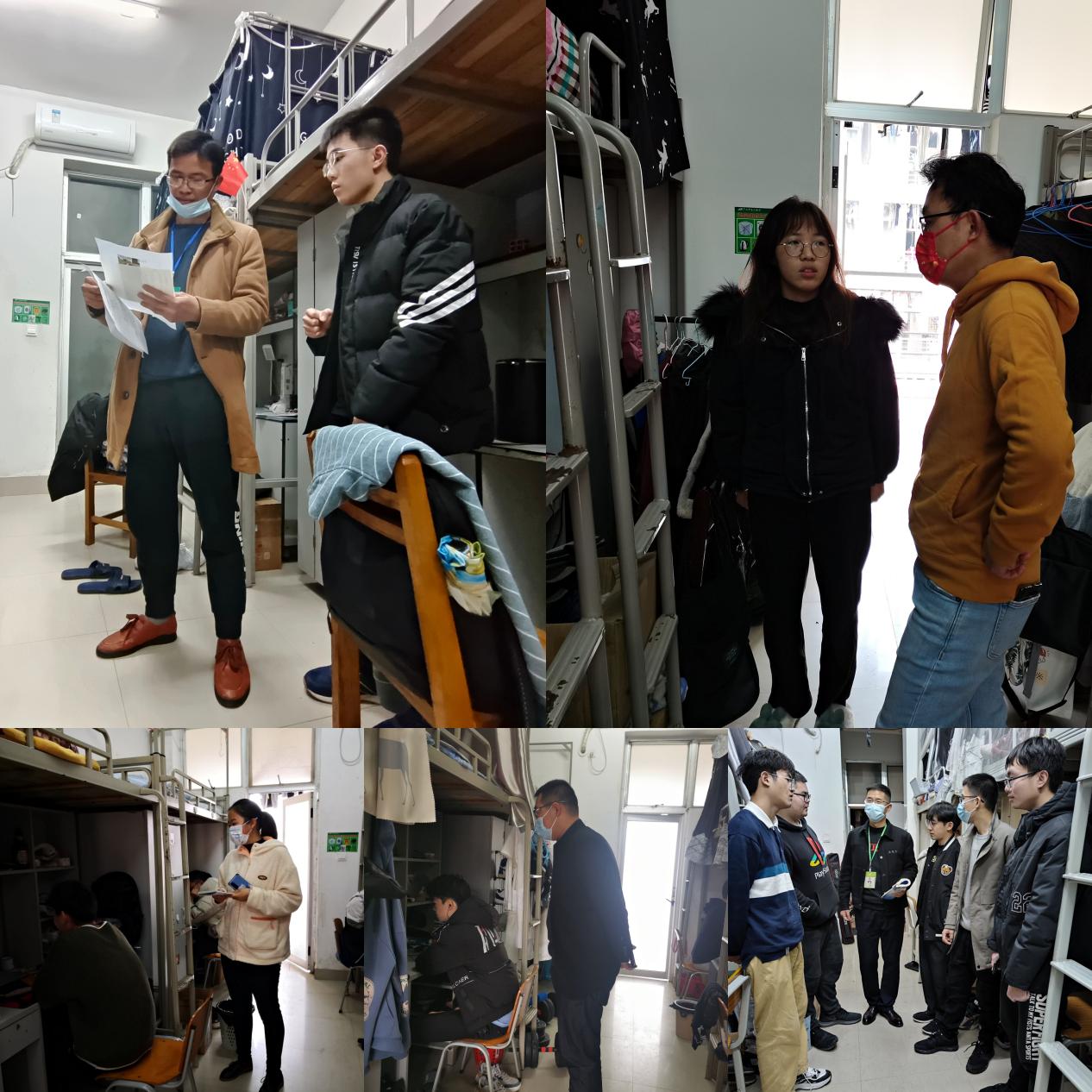 走访过程中,老师们关心同学返校后线上学习情况,悉心了解同学们寒假期间的学习生活状况,并对同学们提出指导:第一,要严格遵守学校各项疫情防控管理规定,在宿舍实行线上学习7天,非必要不出宿舍,同时,自我健康监测14天;第二,保持良好的精神面貌、整洁的仪容仪表、端正的学习态度、干净卫生的宿舍环境迎接新学期的到来,用积极认真的态度上好每一节教学网课、每一堂课;第三,注意用电安全、人身安全和财产安全,尤其是防范电信诈骗,下载安装国家反诈中心APP。
