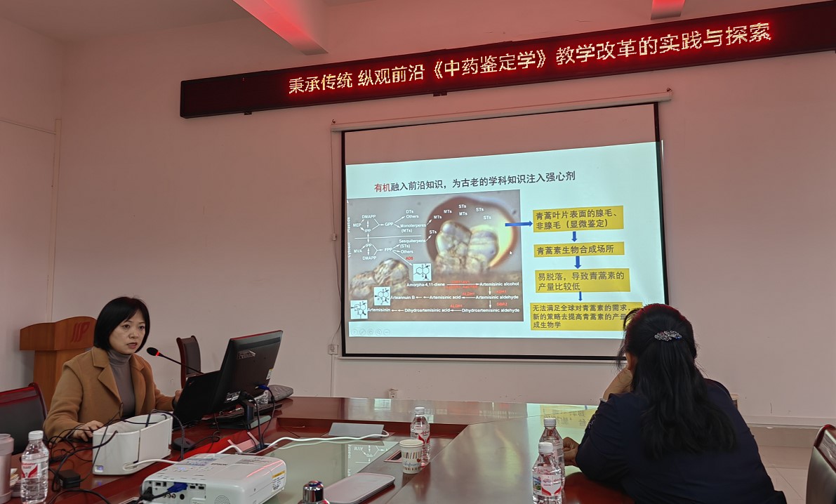 田慧从《中药鉴定学》课程基本信息、教学中存在的问题、解决问题的手段与方法、教学改革、课程思政、学生竞赛等方面进行讲授。田慧结合自己丰富的教学经验,根据该门课程的特点,详细讲授了如何在课堂中秉承传统,融入前沿科技知识,点燃学生勇于创新的火种,并以具体案例讲授了如何在课堂中挖掘和恰到好处的融入思政元素。田慧还强调,教师除了要教学生专业知识和技能外,同时还要尊重教学规律,在课堂中厚植文化自信和传承担当,做到春风化雨“润物细无声”,充分发扬中医药优秀传统文化在思政教育中的育人作用。