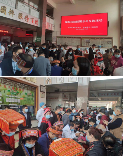 19日在防城港中医医院里开展瑶医药技能展示与义诊活动,很多患者慕名而来,受到患者的一致好评。