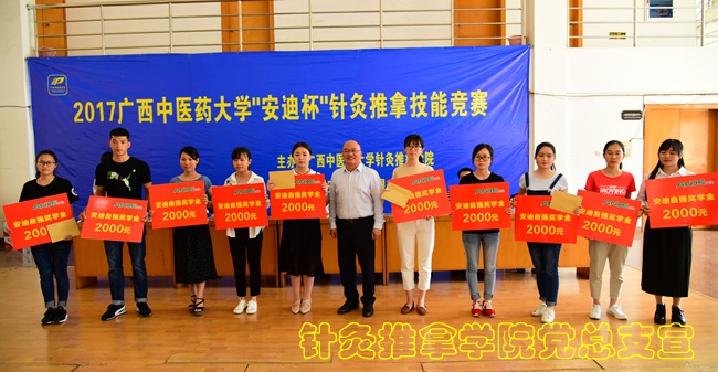 大赛最后,针灸推拿学院院长范郁山教授代表组委会对本次大赛进行了总结。针灸推拿学院领导老师、贵州安迪集团董事长何顺峰先生为2017年“安迪杯”针灸推拿理论与技能竞赛获奖的集体和个人选手颁奖。