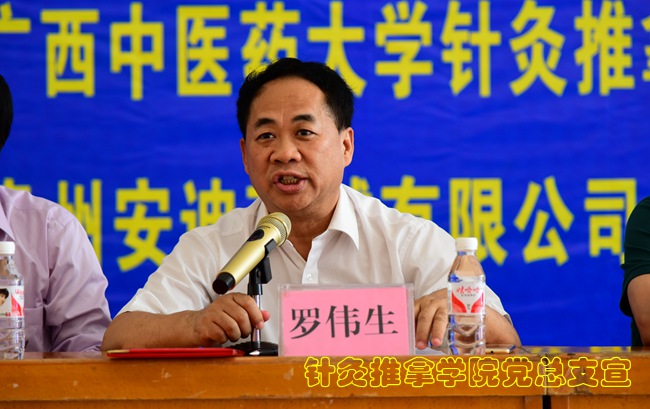 罗伟生在讲话中说,举办针灸推拿技能竞赛目的在于检验我们针灸推拿学科在专业建设和教学改革上的成果,他希望针灸推拿学院通过“以赛促学,以赛促练,以赛促改”的教育思想引领下,不断推进针灸推拿专业的教学改革,提升针灸推拿专业人才培养水平,推动针灸推拿学科建设和学术发展。