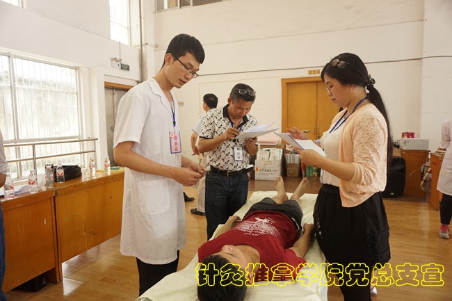 此次竞赛分为毫针刺法、推拿操作和腧穴定位。共有来自2013到2015级的共计45名同学参赛。