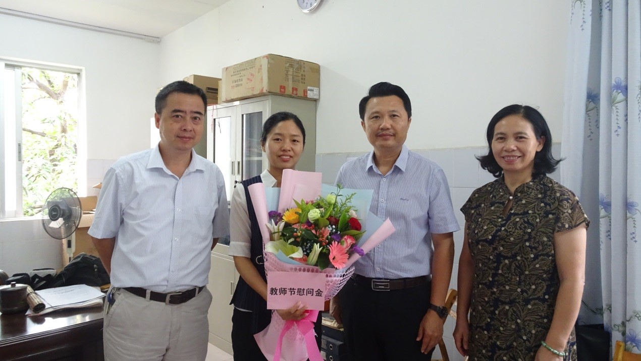 庞宇舟副书记到针灸推拿学院进行教师节慰问 发布时间:2018-09-17 12:38:47 浏览次数: 次 【字体:小 大】 9月11日上午,学校党委副书记庞宇舟在人事处黄燕处长的陪同下,亲切慰问了针灸推拿学院的一线教师代表侯小红。 庞宇舟向侯小红老师送上了鲜花、慰问金与祝福,并与其谈工作、聊生活,征求了其他在场老师对学院发展的意见和建议。教师代表们由衷感谢学校党委行政领导的亲切关怀,表示将一如既往地做好本职工作,不忘初心,以更饱满的热情投入到今后的教育教学工作之中,为学校发展尽自己的绵薄之力。 庞宇舟代表学校党委行政祝我院的教师们节日快乐,心想事成! 分享到: 【打印正文】