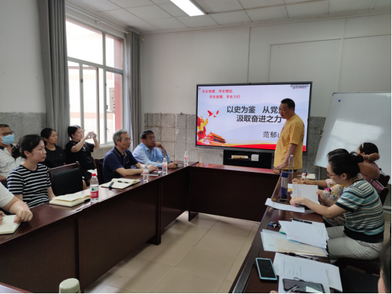 范院长从“以史为鉴、培养家国情怀”,“以史为鉴、汲取成长营养”,“以史为鉴、汇聚奋进精神”三个方面阐述了中国共产党百年历史中蕴含丰富而深刻的道理,讲述了党史学习教育的重要性,教育全体人员要从中国共产党的历史这部丰富生动的教科书中汲取力量,做到“两个维护”,坚定“四个自信”,保持历史定力,增强做中国人的志气、骨气、底气。